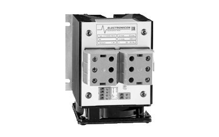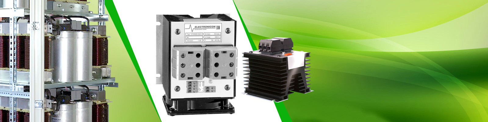 Immediate compensation of inductive reactive power is very often the only way to cope with disturbances imposed on the mains by huge, rapidly changing inductive loads. The CONDENSOTRONIC thyristor switch module makes reaction times of 1…20 milliseconds possible. The switching is done, practically without reactive effects, at zero voltage level (no voltage between input and output). The CONDENSOTRONIC module has a very compact design, convenient connection, integral overheating protection, and LED indication for the switching signal and excessive temperature.